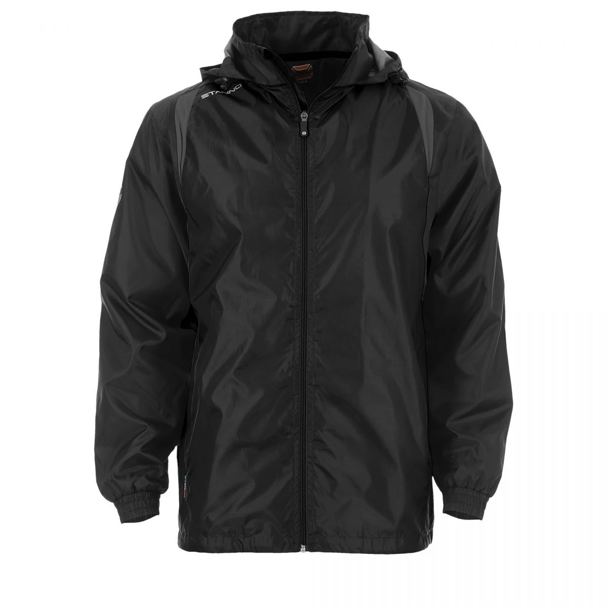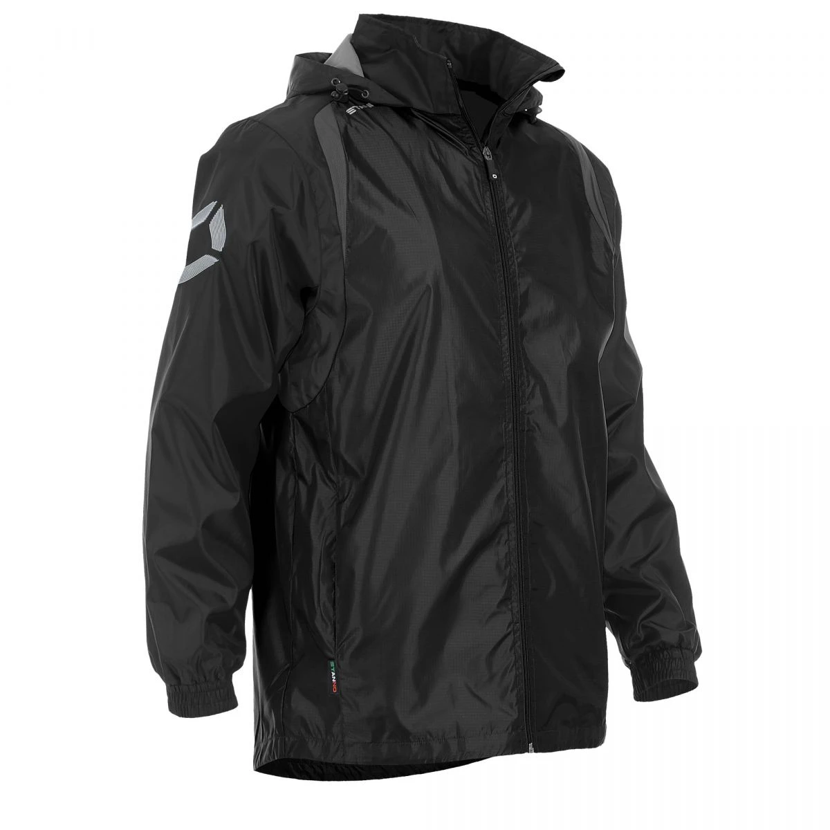 This windbreaker (100% polyester ripstop) is finished with a special coating and mesh lining that make the jacket water repellent and protect you from cold wind. The jacket protects you in inclement weather conditions with an elastic cord in the cuffs and hem, a windbreaker behind the zip and a comfortable high collar. It also contains a hidden hood. The windbreaker is the ideal jacket for a long day on the sidelines!