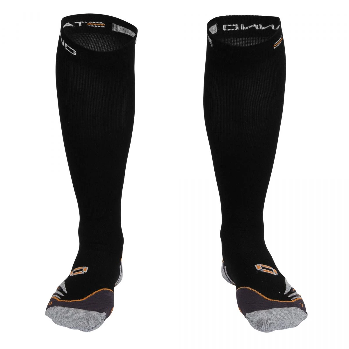 The pressure that compression socks exert on the legs has advantages for various sports. It optimizes the blood flow to the heart and the dispose of waste arising at sporting endeavors. Compression socks work preventively against calf complaints, strains and cramps. The seamless heel and toes of the socks are made of NanoGlide-material, in order to prevent blisters. The material mix (97% polyamide, 2% elastane, 1% glass beads) ensures optimal thermal regulation and moisture transport. The back of the socks is provided with reflective yarn.