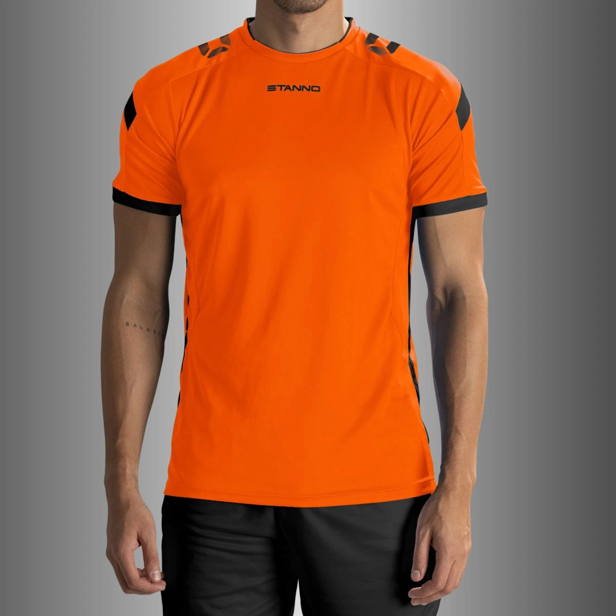 This comfortable sports shirt from Stanno (100% polyester) contains a ClimaTec finish that ensures that sweat is removed extra quickly. Thanks to the ventilating mesh panels in the side and under the arms, the shirt also feels extra airy. The shirt has a nice stretch, which is also made in the round neck. The logos are printed on the shirt.