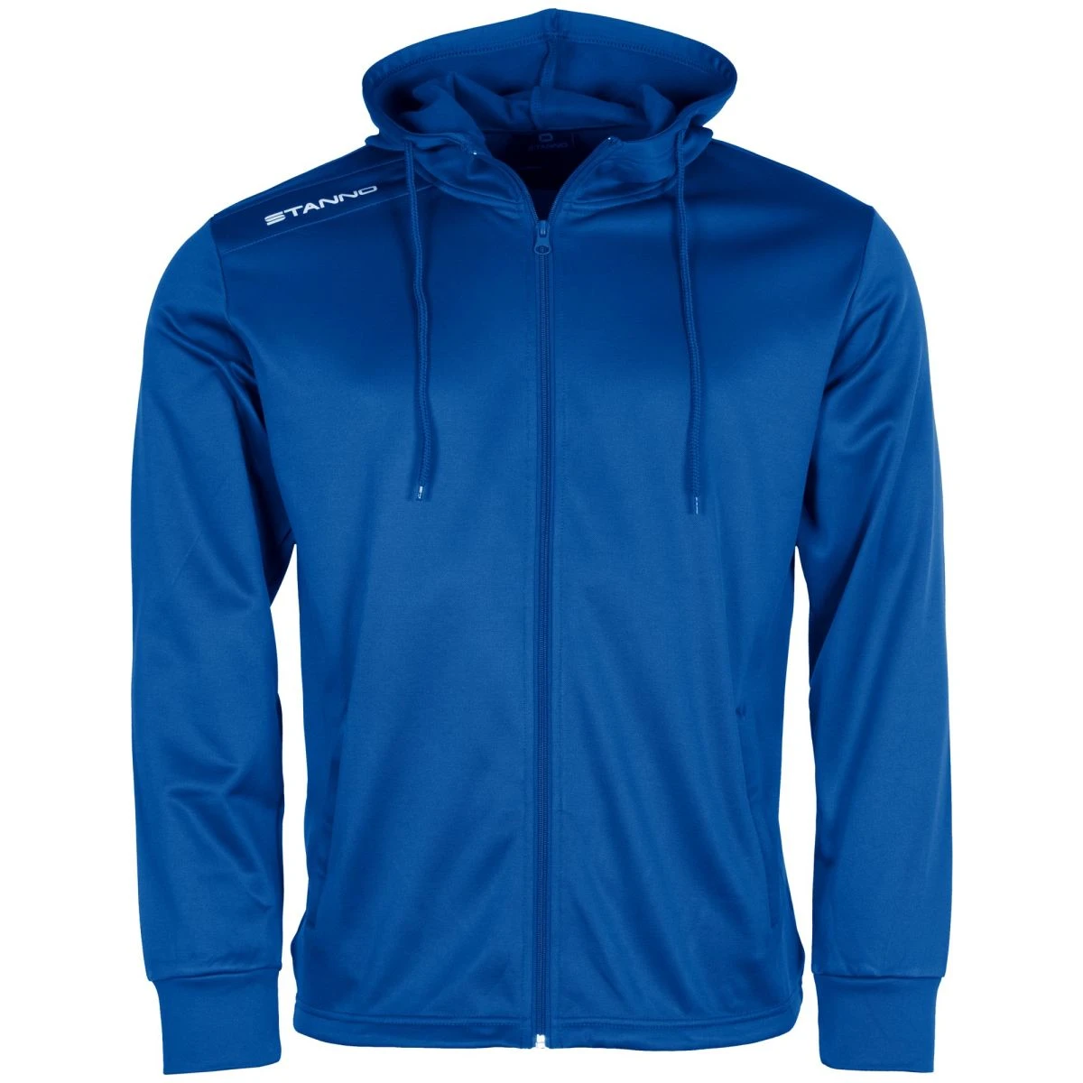 The Field Hooded Top Full Zip is made of 100% polyester with a brushed inside and has a regular fit. The Field Hooded Top Full Zip has a stand-up collar, drawstring hood and a tunnel with drawstring at the bottom. In the two side pockets, which are closed with zippers, you can easily carry all your stuff. The tight fitting cuffs and shoulder panel with Stanno logo complete the look!