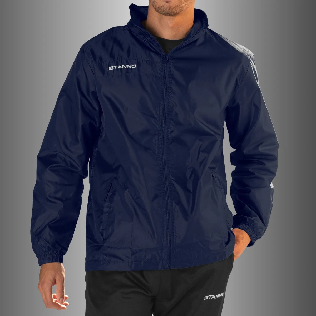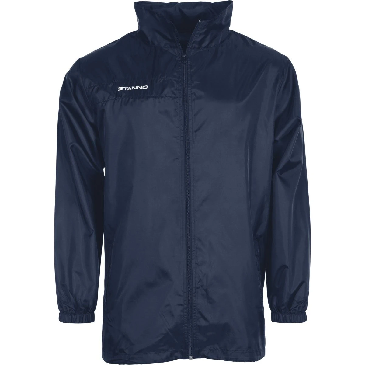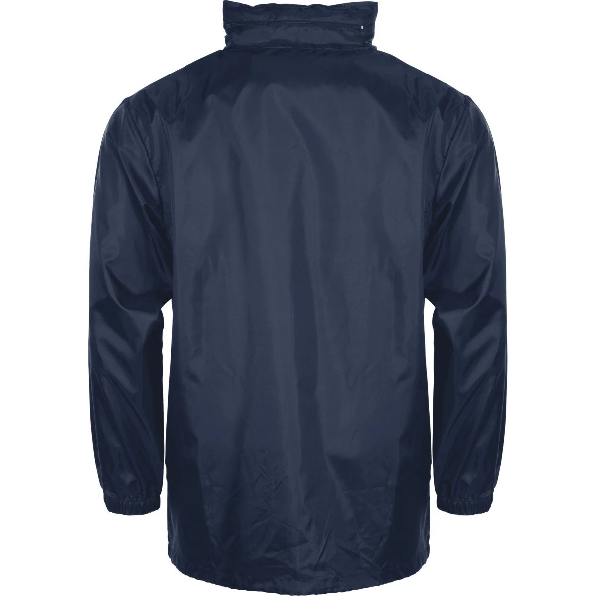 The Stanno Field Jacket is made of 100% polyester, finished with a water-repellent coating (600mm PU). The body contains a 100% polyester mesh liner and the lining of the sleeves is 100% polyester tafetta. The jacket features elastic cuffs, a tunnel with drawstring at the bottom, two side pockets (without zip) and a hidden hood inside the collar. There’s a printed Stanno logo on the right chest and the opening for a print plate makes it easy to print on the back.