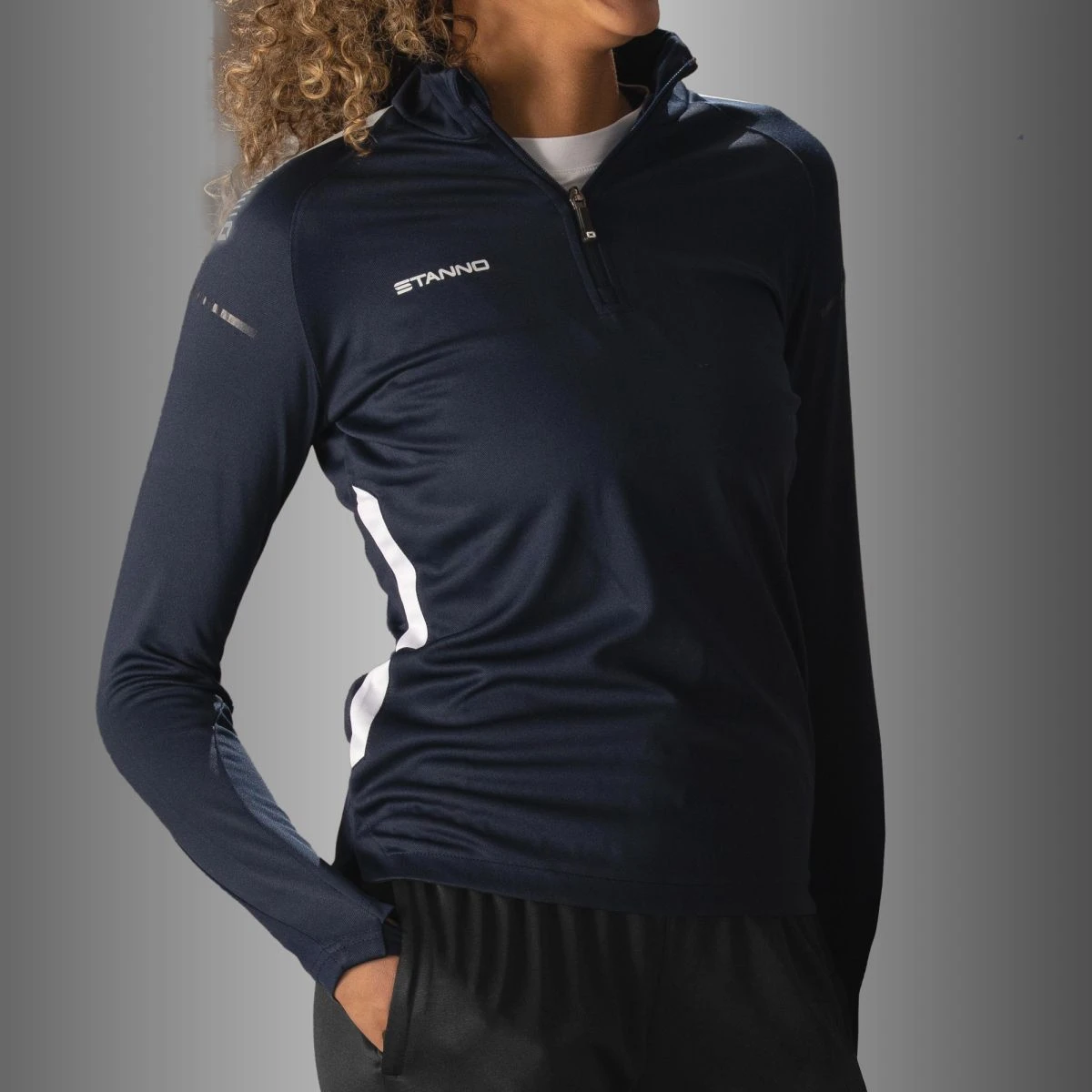 This top by Stanno has a ladies fit and is made from 100% recycled polyester. The top has a stand-up collar with a zipper up to the chest. You wear this top before or after exercise or during your warm-up and cool down so that your muscles stay warm. The top has mesh panels and a raglan sleeve insert ensures that you have sufficient freedom of movement. Not only is the fabric made from recycled material, but the zipper on the front is also made from recycled material. Another nice thing about this top are the thumbholes for a comfortable feeling. The printed Stanno logos complete this top. The top is suitable for team sports and presentation.
