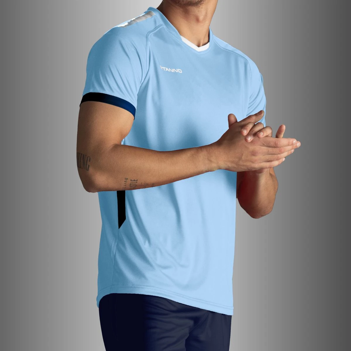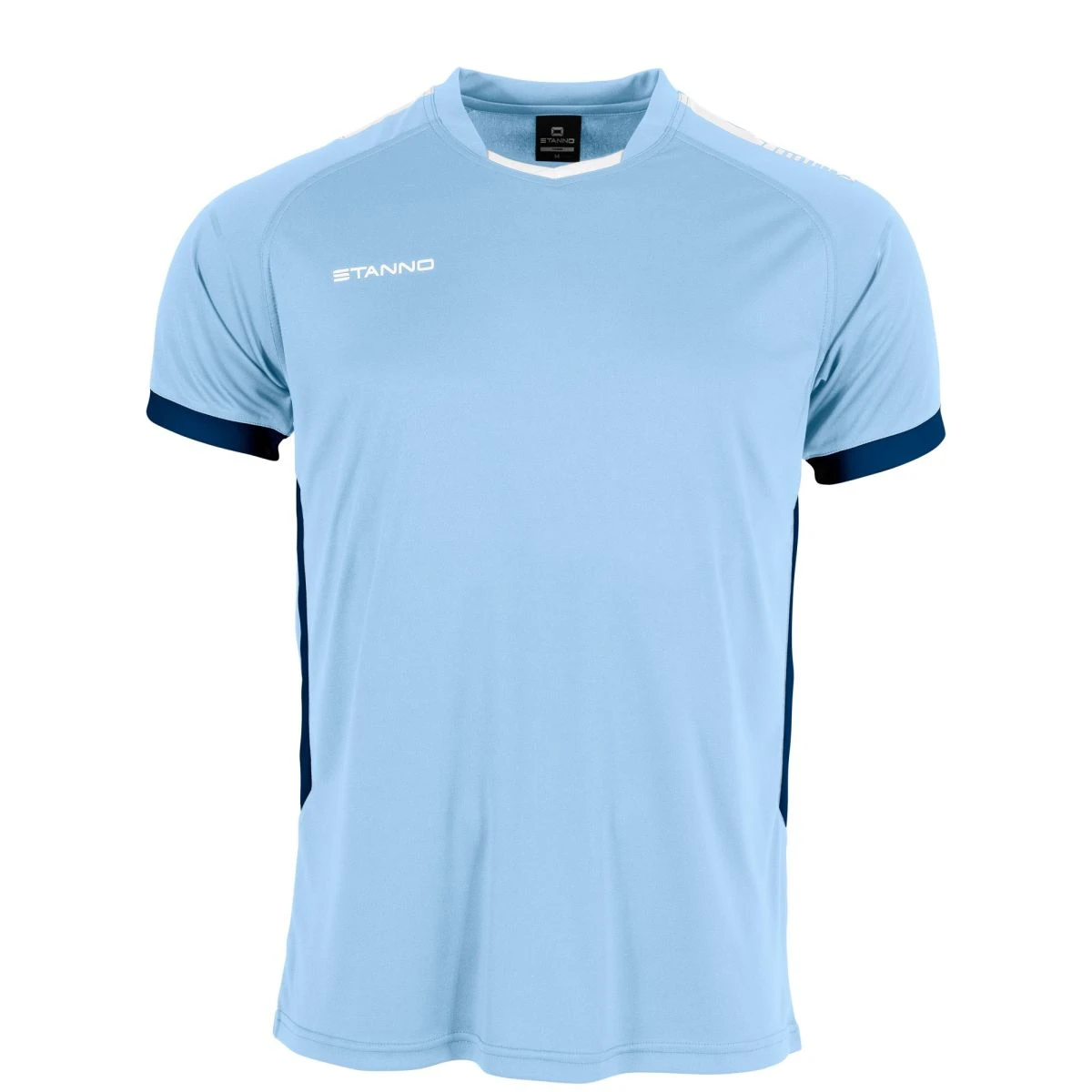 This First V-neck shirt from Stanno is made from 100% recycled polyester. The shirt is quick-drying and has a ClimaTec finish that ensures optimal sweat-wicking. The shirt feels soft, and the raglan sleeve insert provides sufficient freedom of movement. The shirt is fully double-stitched for extra strength at the seams because, of course, this shirt has to take a beating on the field. The printed logos make this shirt a stylish addition to your sports wardrobe. The shirt is suitable as a competition shirt, for presentation and also as a training shirt.