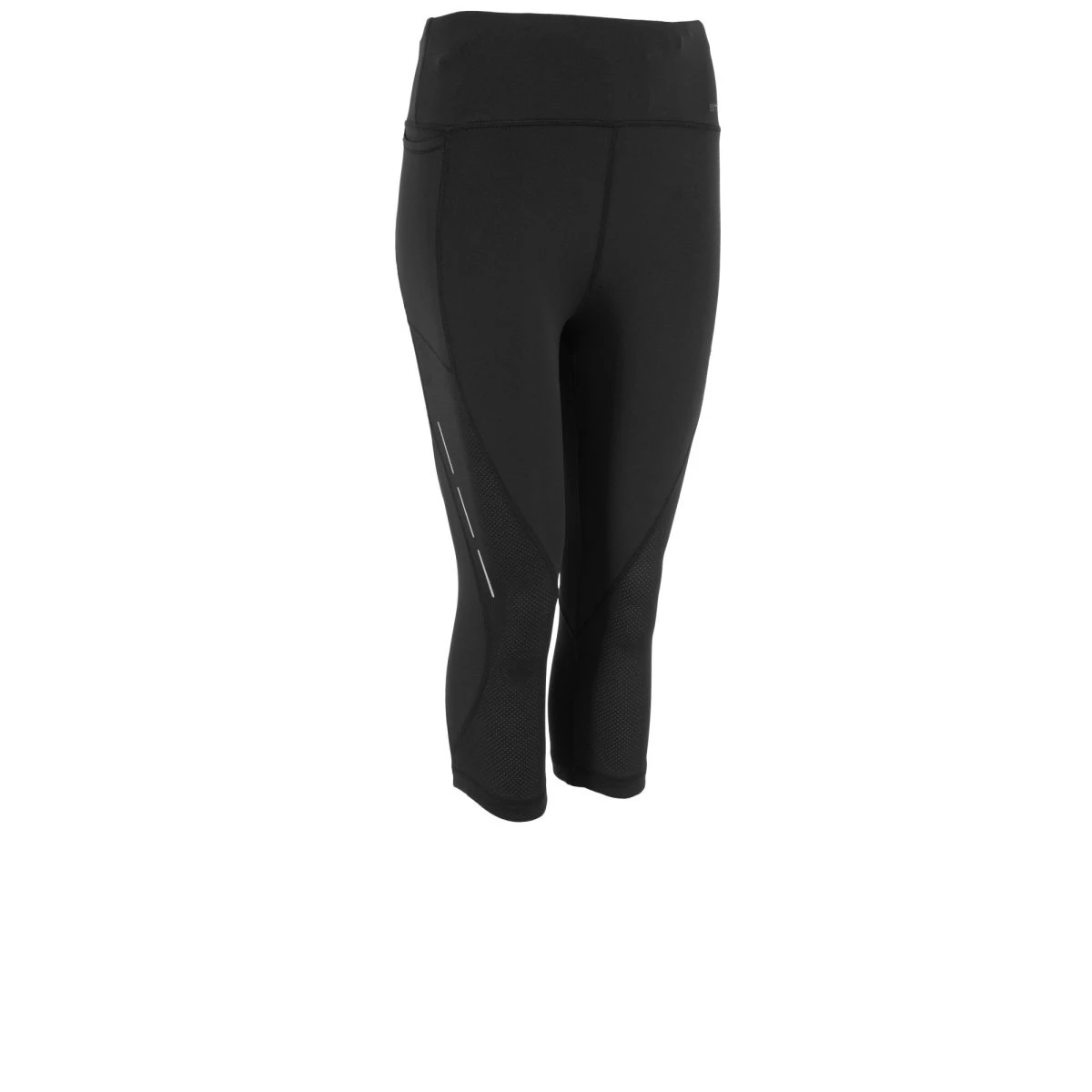 Wear these Stanno tights made of 80% polyester and 20% elastane to cover your legs just over the knee during exercise, without getting too hot. The ClimaTec finish ensures that these tights dry quickly and due to the partly elastic material you can move freely. Mesh panels ensure ventilation. The wide waistband provides extra comfort. You can easily take your keys and/or telephone with you in the pocket on the right side or back. Furthermore, these tights have reflective prints for visibility. The silicone print at the bottom guarantees extra grip so that the bottom does not crawl up during exercise. Ideal for those who like to go to the gym or do a workout at home, but also for outdoor use such as a nice run.