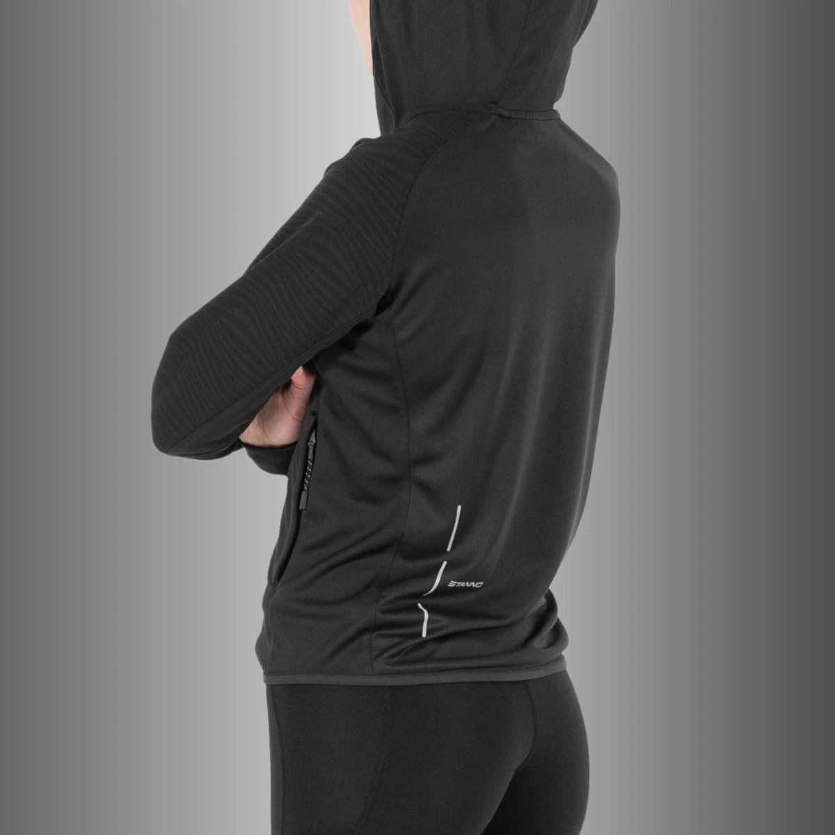 If you are looking for a multifunctional ladies’ sports top, this hoodie by Stanno is a good choice. This top is made in a ladies’ fit. The top has a high collar and a zipper on the front. The top is made of quick-drying material. The top has long sleeves with a thumb hole so that the top stays in place. The sleeves have a jacquard construction in the pattern. The raglan sleeves give you total freedom of movement, so this top is extra comfortable. There is a reflective print on the back panel, and the side pockets have high-quality SBS zippers.