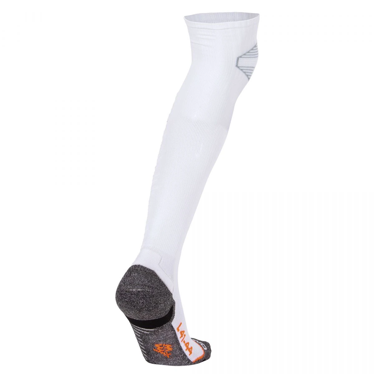 Especially for goalkeepers: these High Impact II Goalkeeper Socks. The three-layer impact pad provides optimal fall protection. The socks have a preventive effect to avoid injuries, think of protective impact zones around ankle, calf and knee. The socks have a knitted mesh structure on the back and have a high stretch level. In addition, the socks ensure optimal moisture regulation and the sole has an antibacterial finish. The socks have an anatomical foot and a left-right indication.