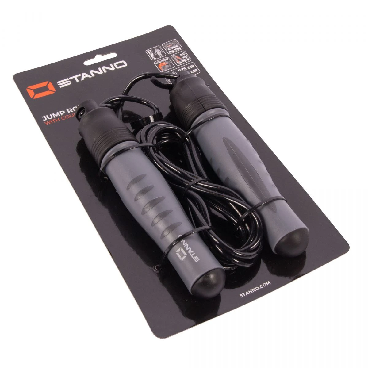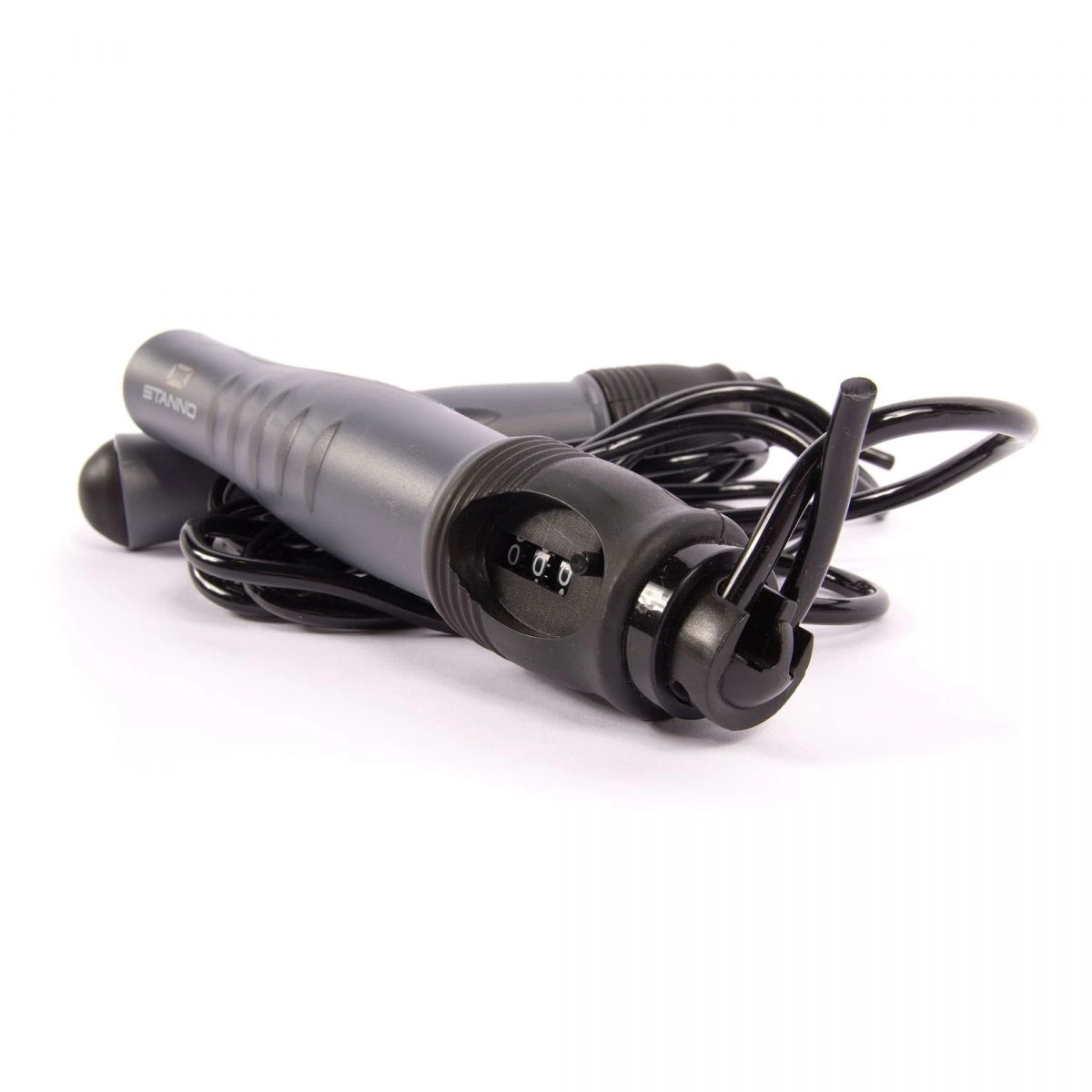 Skipping rope with a jump counter. Made of PVC/TPR. The length of the rope is easily adjustable. The handles are equipped with non-slip material.