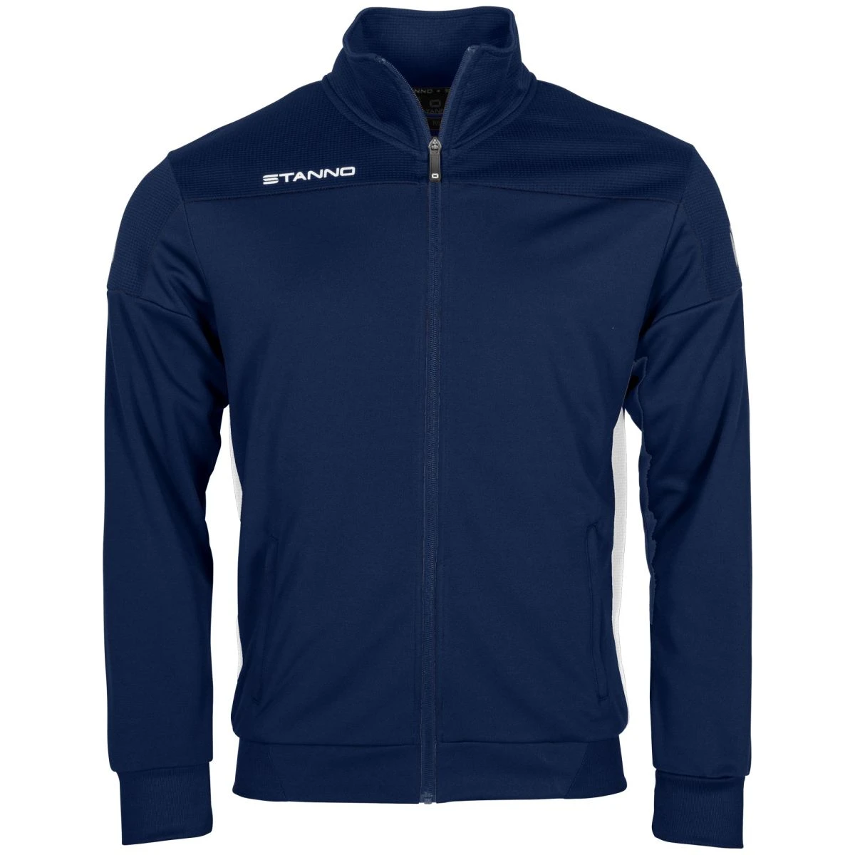 This stylish jacket, part of the Stanno Pride collection, is comfortable to wear before and after exercise or during your warm up. The jacket has two slit pockets on the front and connecting machets of elastic rib material. The top and sides are made of ventilating mesh that feels light and airy. The waist is also finished with an elastic rib material, which ensures an optimal fit.