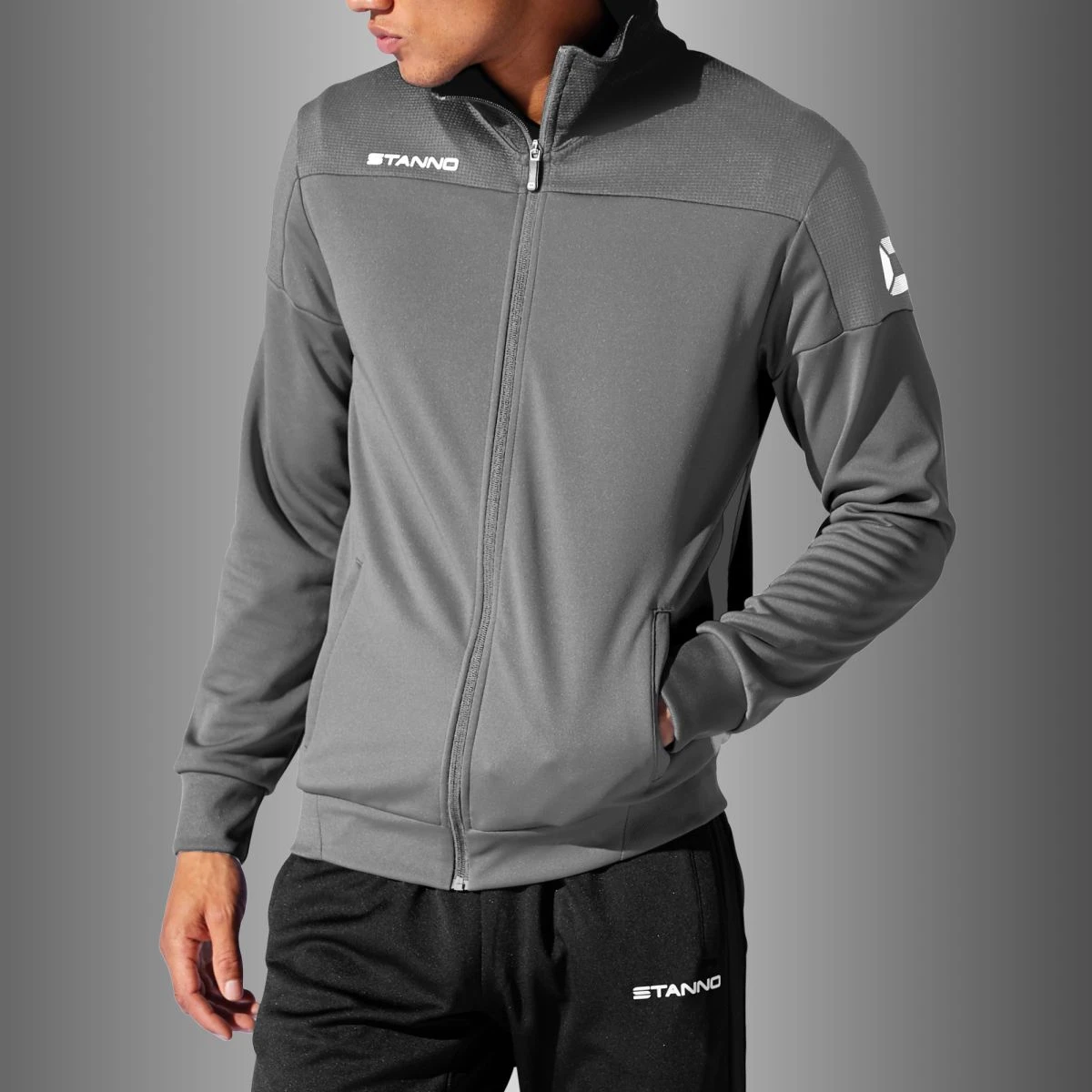 This stylish jacket, part of the Stanno Pride collection, is comfortable to wear before and after exercise or during your warm up. The jacket has two slit pockets on the front and connecting machets of elastic rib material. The top and sides are made of ventilating mesh that feels light and airy. The waist is also finished with an elastic rib material, which ensures an optimal fit.