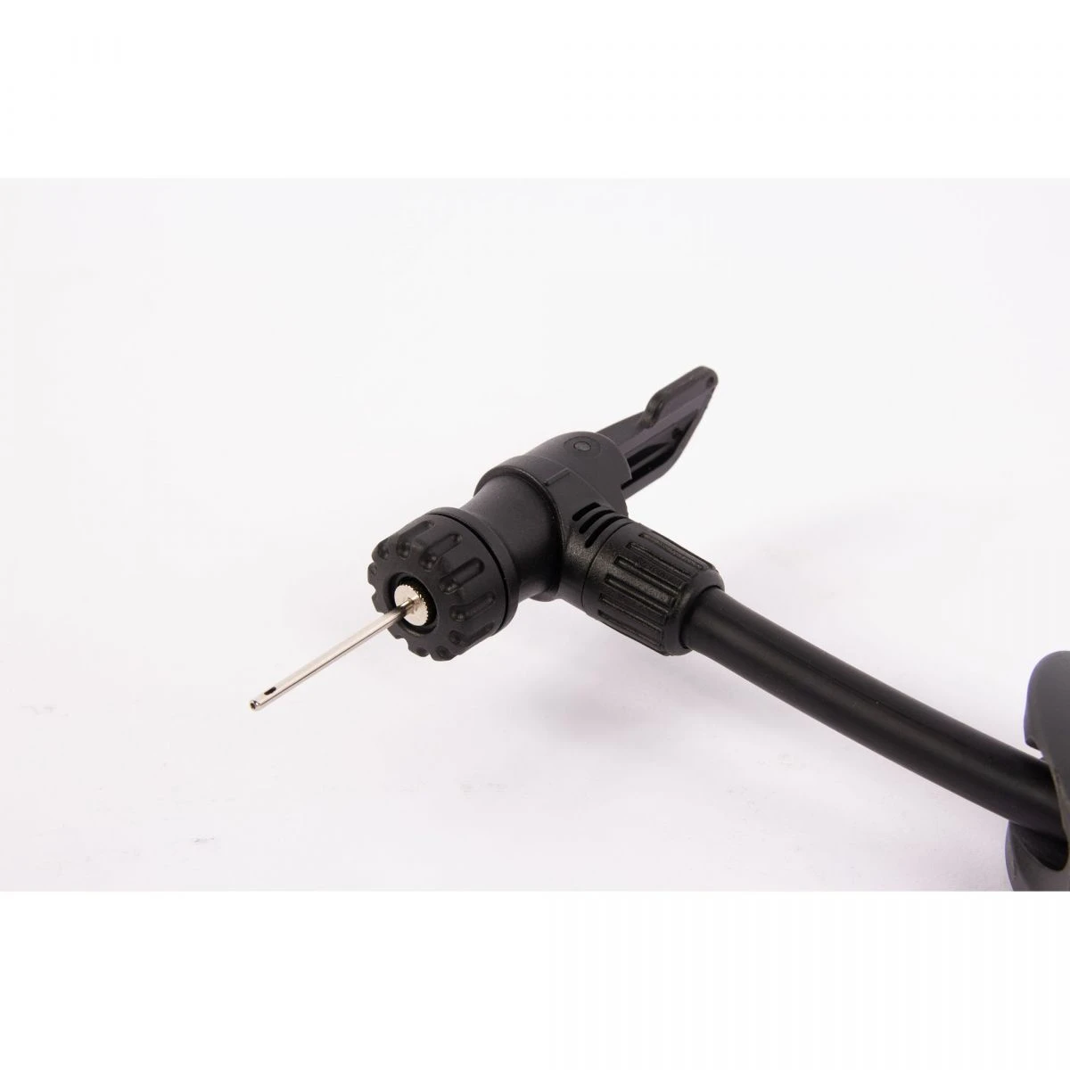This pump with pressure gauge has a telescopic design; extendable up to 40 cm. Equipped with flexible hose to prevent the needle from breaking during pumping. Dual action pump. Also suitable as a bicycle pump.